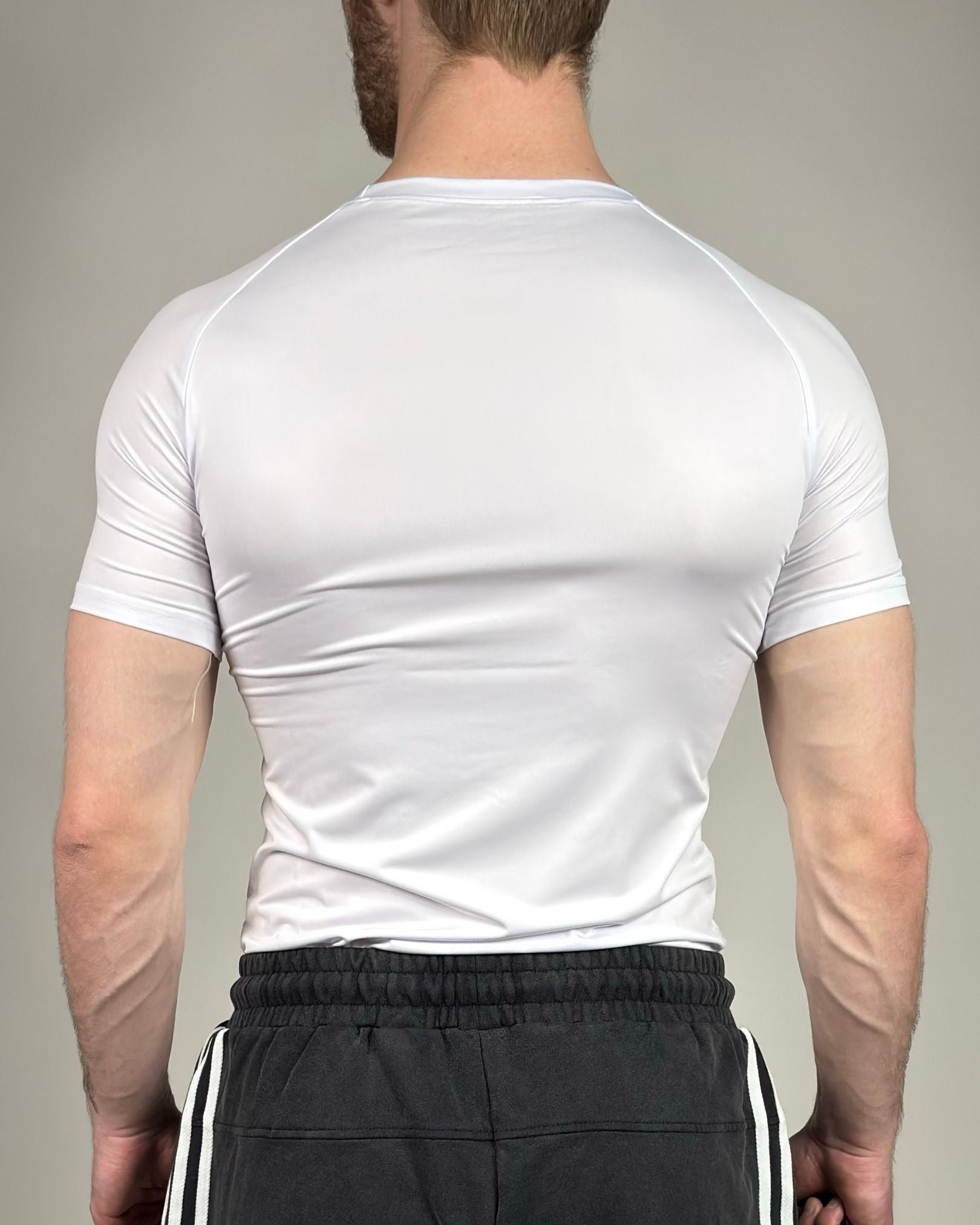 Men’s short sleeve performance compression t-shirt made for weight training, running, and high-intensity workouts. Designed with a second-skin fit that supports muscle performance and recovery. The lightweight, breathable fabric keeps you cool while maintaining flexibility and durability through every rep and run.